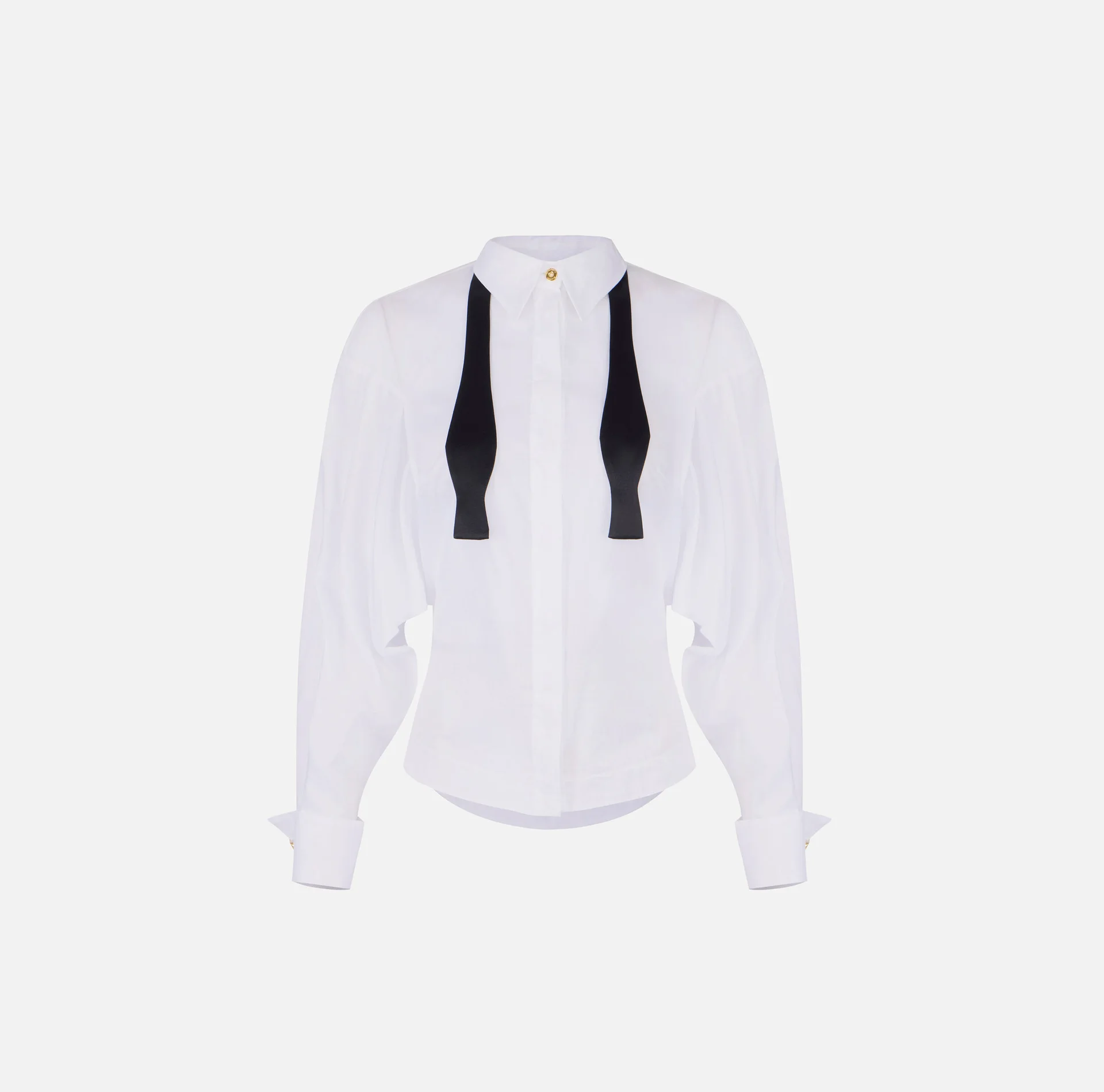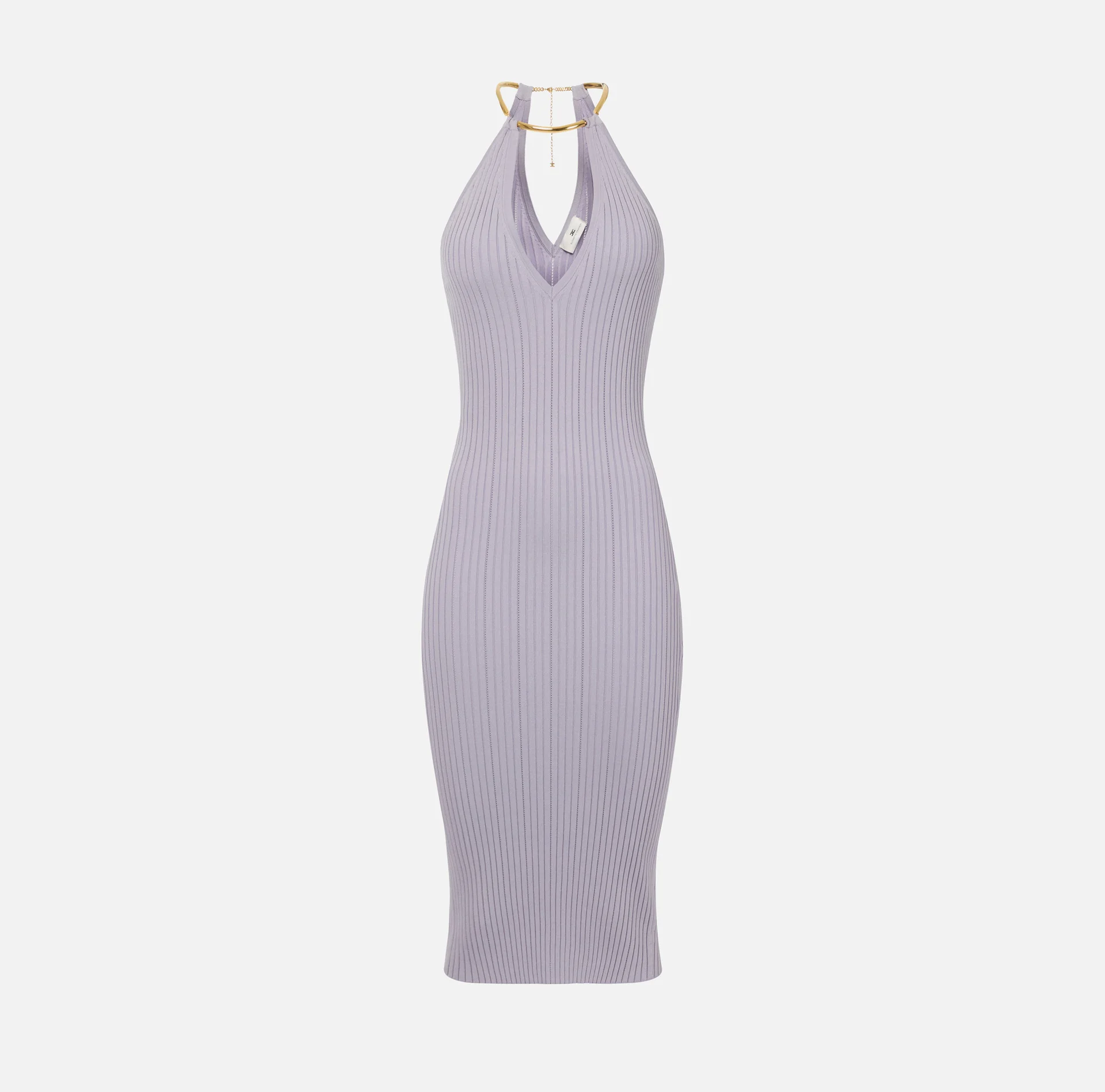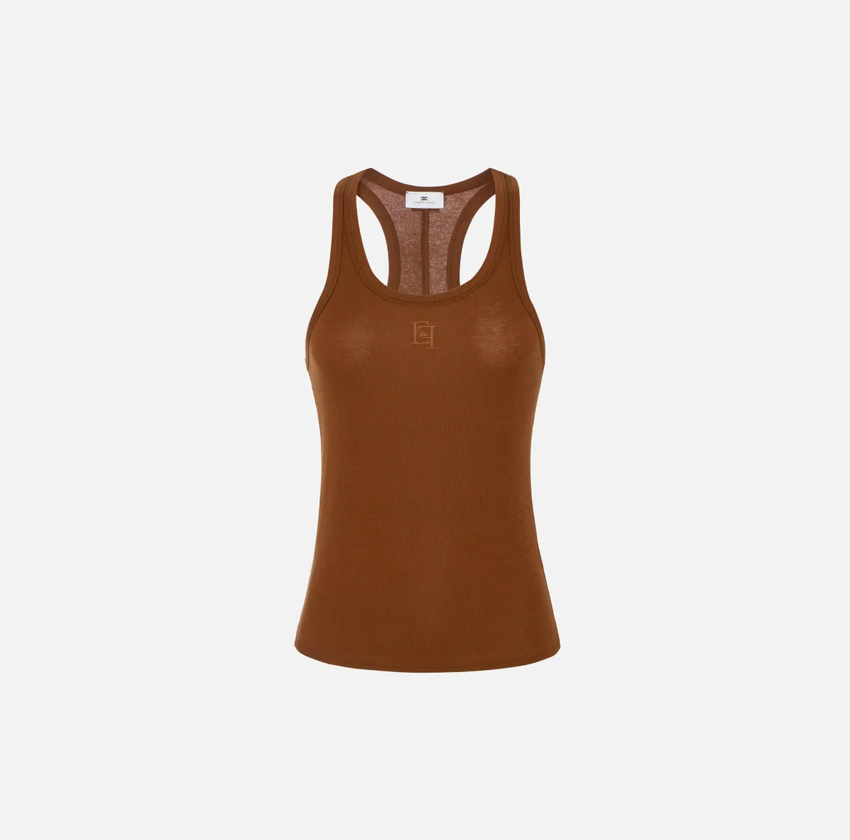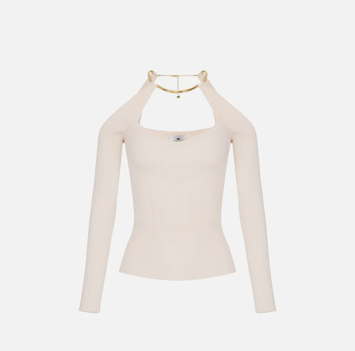 Top Crop Tricotat cu Guler și Plăcuță Aurie